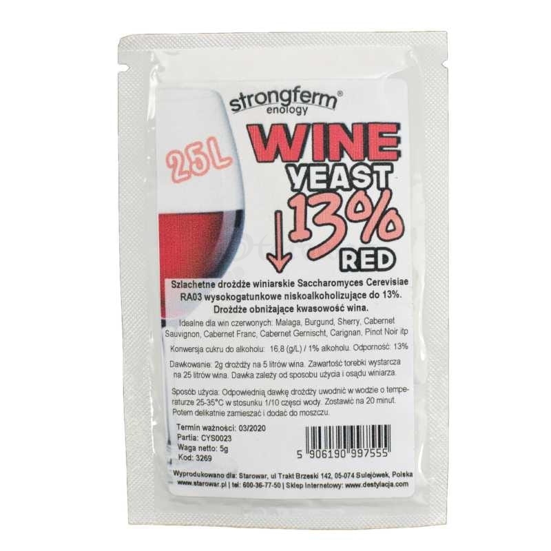 Drożdże Winiarskie STRONGFERM WINE YEAST 13% RED - Wino Czerwone Niskoprocentowe