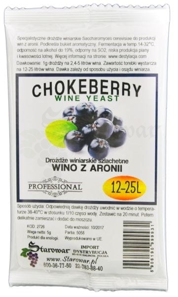 Doskonałe dedykowane drożdże winiarskie WINE YEAST CHOKEBERRY przeznaczone do produkcji 25 litrów wina z aronii.