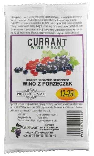 Doskonałe dedykowane drożdże winiarskie WINE YEAST CURRANT przeznaczone do produkcji 25 litrów wina z porzeczki.
