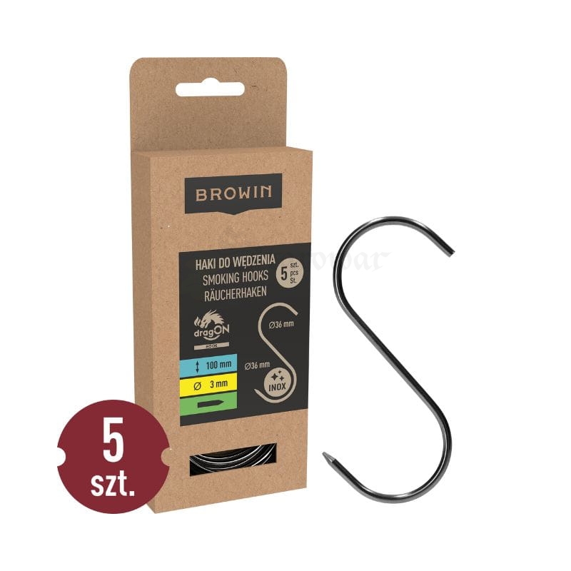 Haki o długości 100 mm to standardowe akcesoria wędliniarskie wykorzystywane przy produkcji wędlin o mniejszym kalibrze oraz serów typu oscypek. Stalowy drut 3 mm ułatwia osuszanie wyrobów przed procesem wędzenia oraz ich późniejsze przechowywanie. Dzięki odporności na warunki zewnętrzne, haki mogą być stosowane w wędzarniach ogrodowych, balkonowych oraz profesjonalnych komorach dymnych.