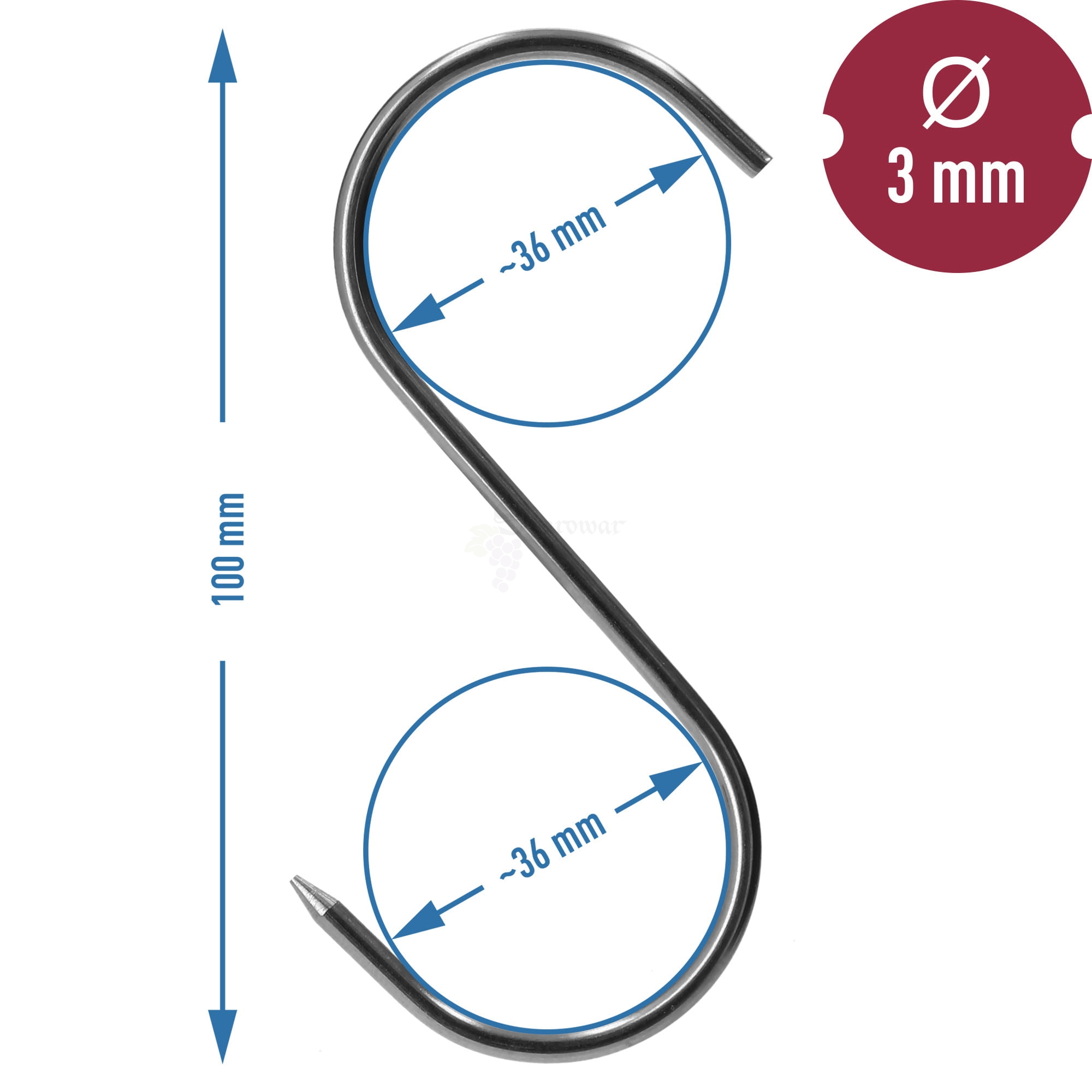 • Średnica drutu 3 mm: Kompaktowa grubość drutu sprawia, że haki są lekkie i nie pozostawiają dużych otworów w wędzonych produktach, zachowując przy tym odpowiednią sztywność.