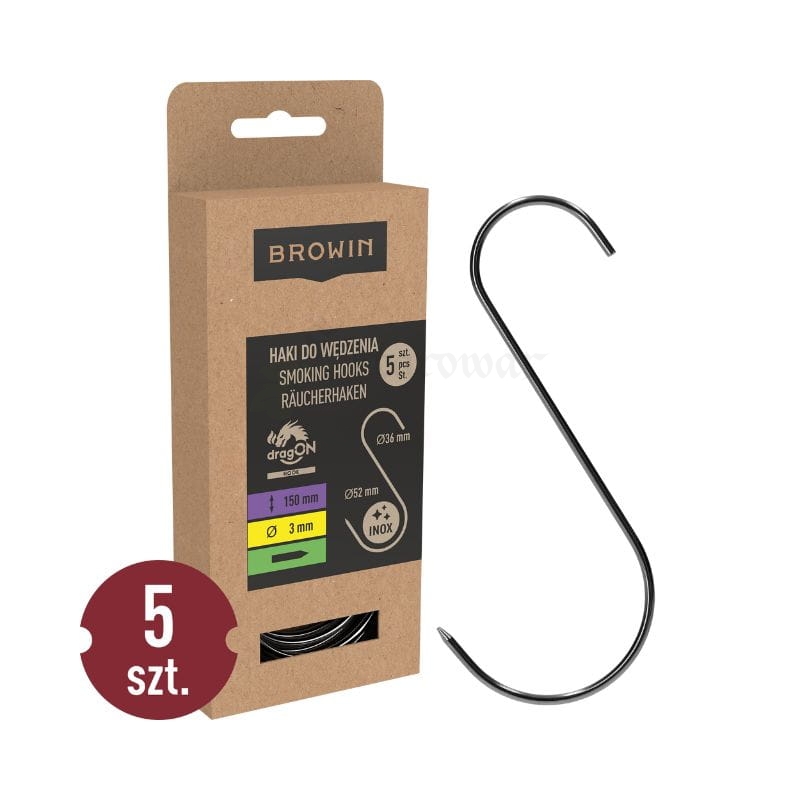 - Klasyczny kształt S: Geometria haka pozwala na stabilne zawieszenie wędlin na kijach wędzarniczych oraz drążkach w osuszalniach.