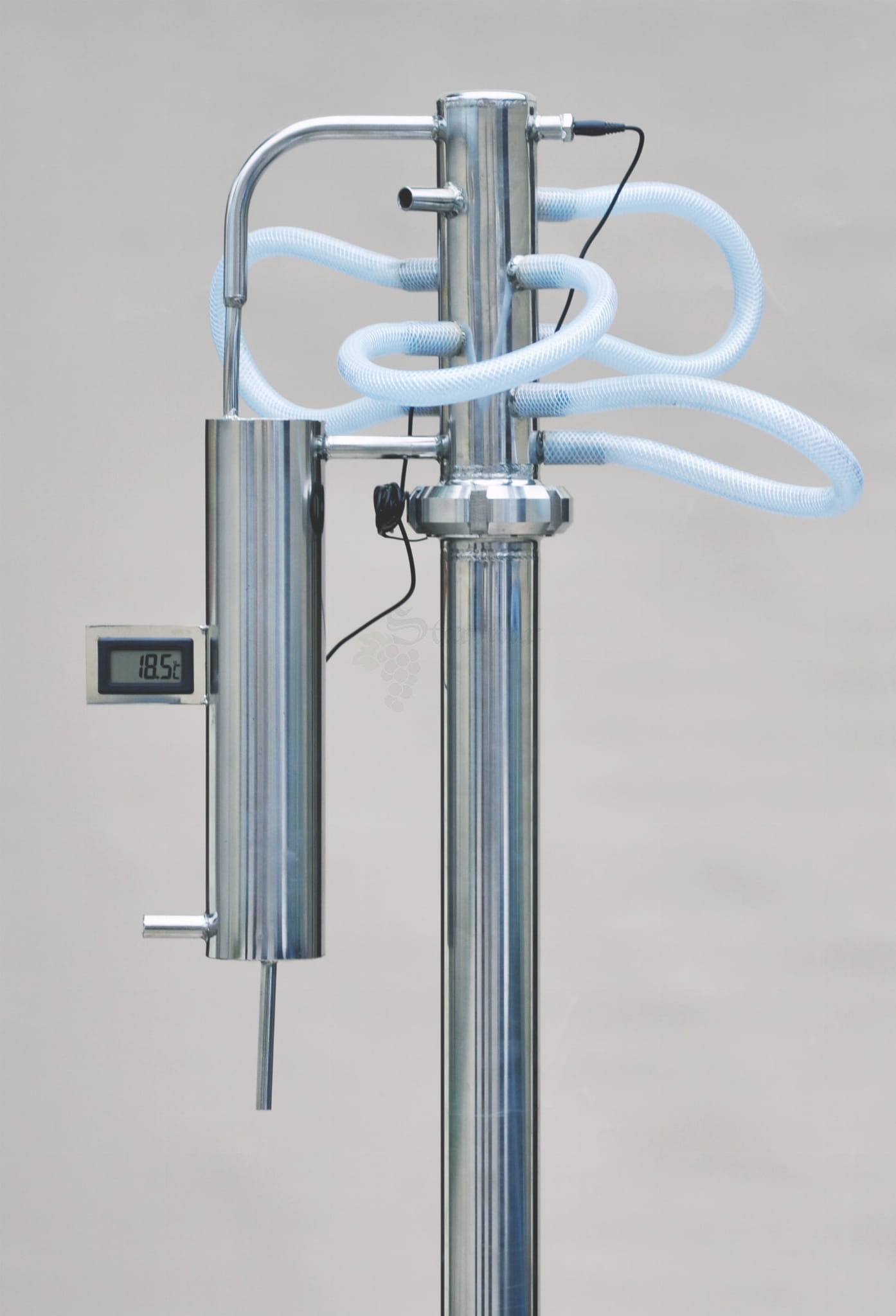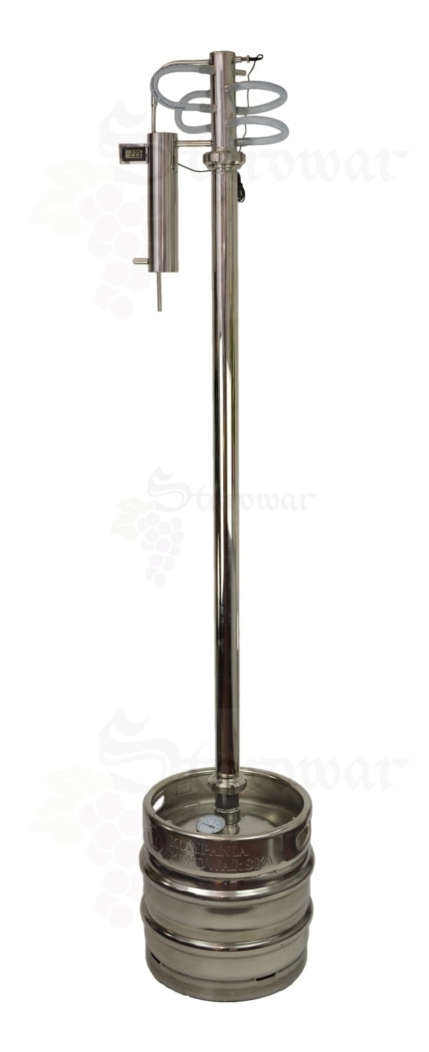Jest to idealny aparat dla ludzi,  którzy nie mają doświadczenia w procesie destylacji. Jest bardzo stabilny i bezpieczny. Bardzo wydajna stalowa chłodnica daje gwarancję na to, że destylat  nawet przy bardzo małej ilości wody chłodzącej wypływa całkowicie schłodzony. Z aparatu nie wydostają się żadne zapachy z destylowanych płynów. Aparaty są urządzeniami pracującymi w systemie . Nie ma takiej możliwości żeby wytworzyło się w nim ciśnienie. Przed  zatkaniem elementów, które muszą być drożne zabezpieczają dekle ze stali perforowanej kwasoodpornej.
