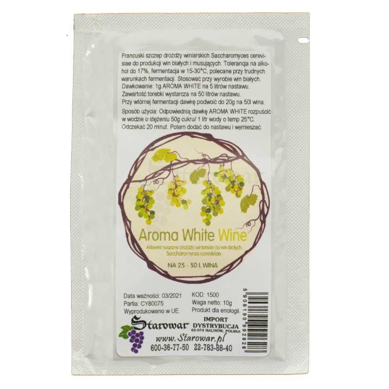 Drożdże winiarskie AROMA WHITE do win białych i musujących.