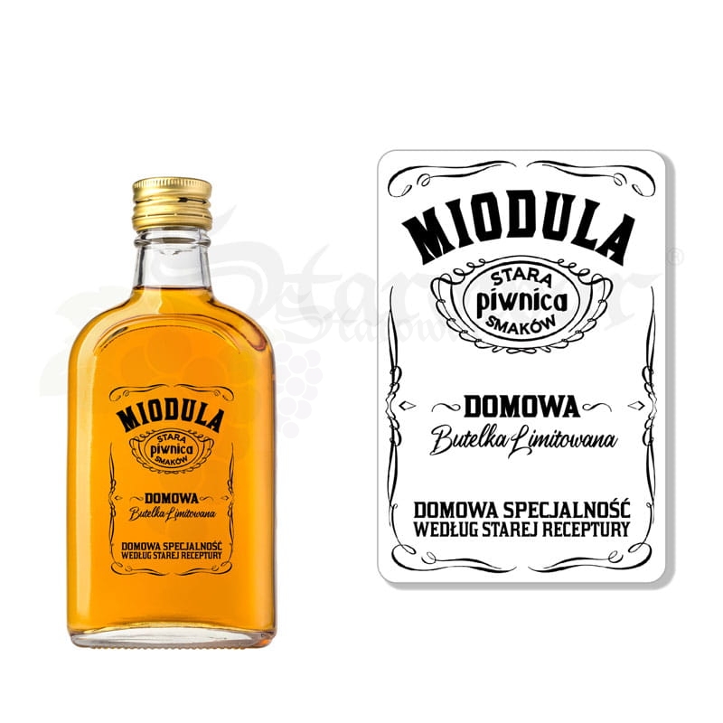 Transparentna, monochromatyczna etykieta na butelkę z serii "Stara Piwnica Smaków", dedykowana domowej mioduli.