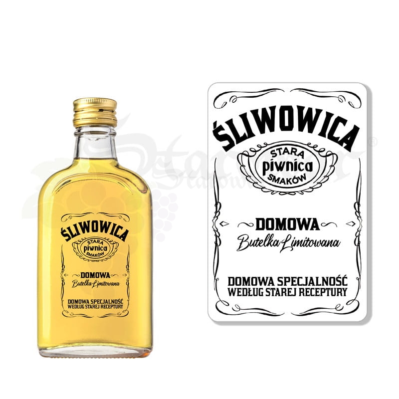 Transparentna, monochromatyczna etykieta na butelkę z serii "Stara Piwnica Smaków", przeznaczona na Domową Śliwowicę.
