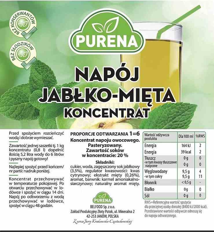 NAPÓJ JABŁKO-MIĘTA KONCENTRAT 1kg
