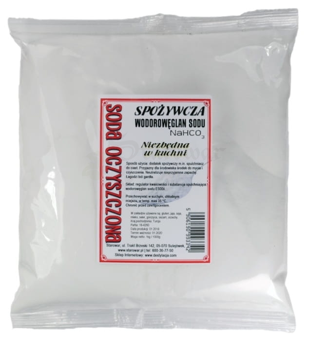 Soda oczyszczona 1kg - wielozadaniowe, naturalne źródło oczyszczania dla Twojego domu i zdrowia. Odkryj niezliczone możliwości zastosowania sody oczyszczonej. Pochodząca w 100% z naturalnych surowców, ta wyjątkowa substancja jest niezastąpiona w kuchni, kosmetyce i lecznictwie. Wykorzystaj jej siłę w codziennych czynnościach domowych, w łagodnym i ekologicznym stylu.